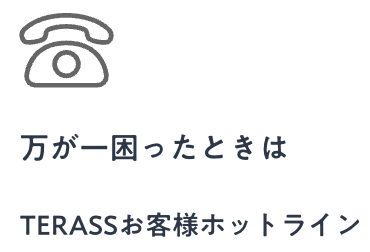・対象:TERASSの不動産エージェントへご相談中またはお取引のあるお客様、不動産業者様に向け・対応時間:10時〜18時(年末、夏期休暇期間中を除く)