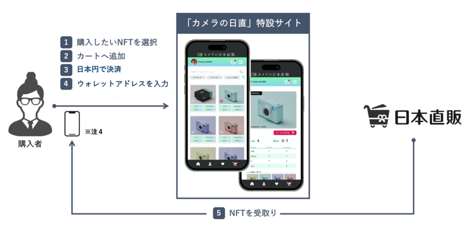 これにより、日本直販が再流通を担い「カメラの日直」を提供することで、Web3の知識がないお客様でも、「SNPIT(スナップイット)」が始めやすくなります。