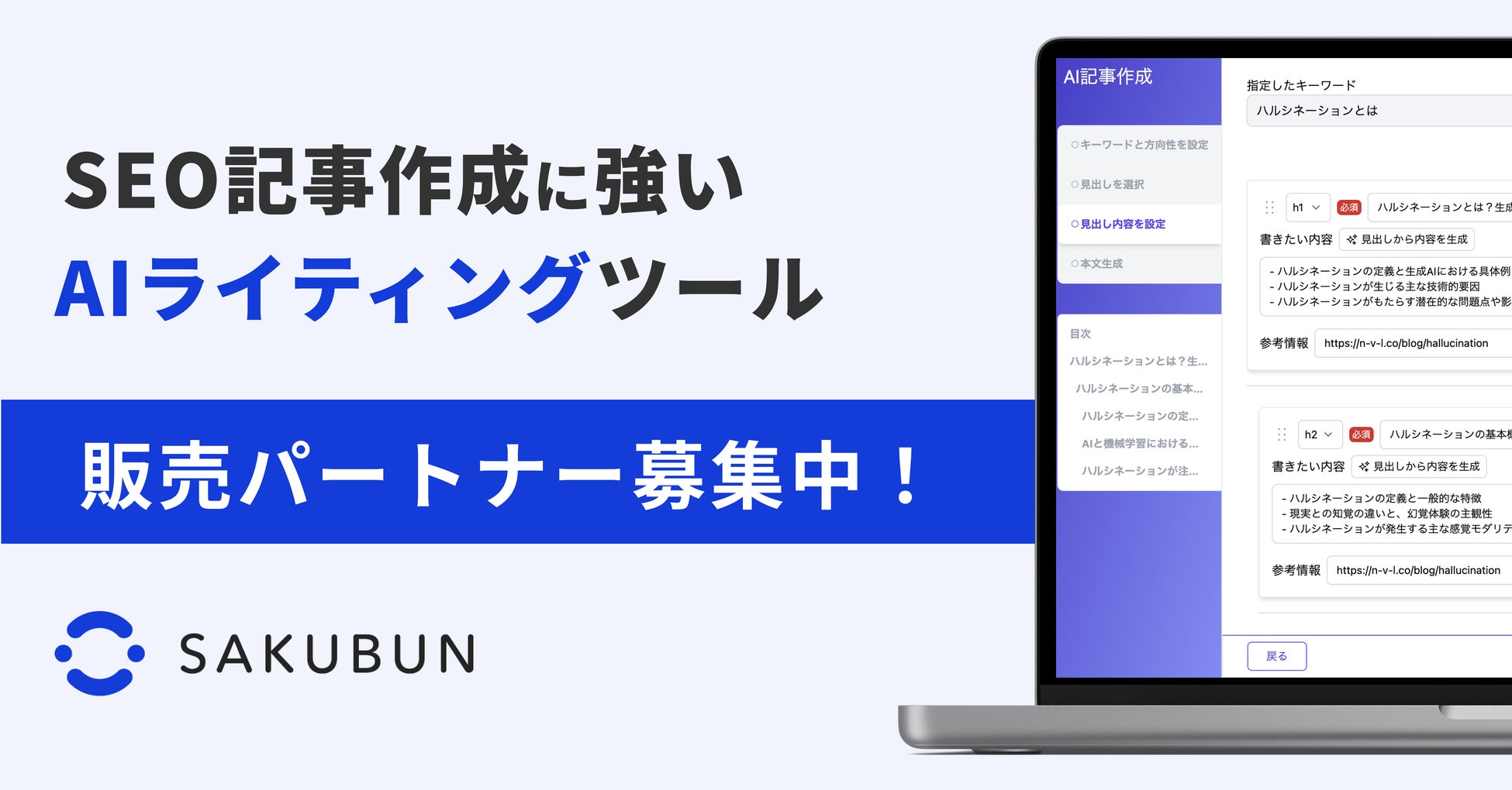 NOVEL株式会社(本社:東京都中央区、代表取締役:岡田徹)は、SEO特化の法人向けAIライティングツール「SAKUBUN」の販売パートナーの募集を開始しました。