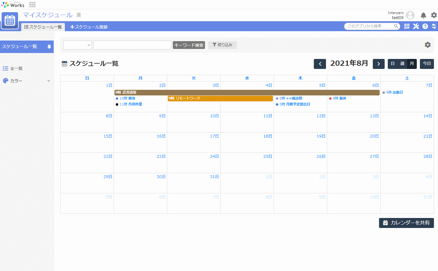 ・カレンダーに表示する色は任意に設定できます。