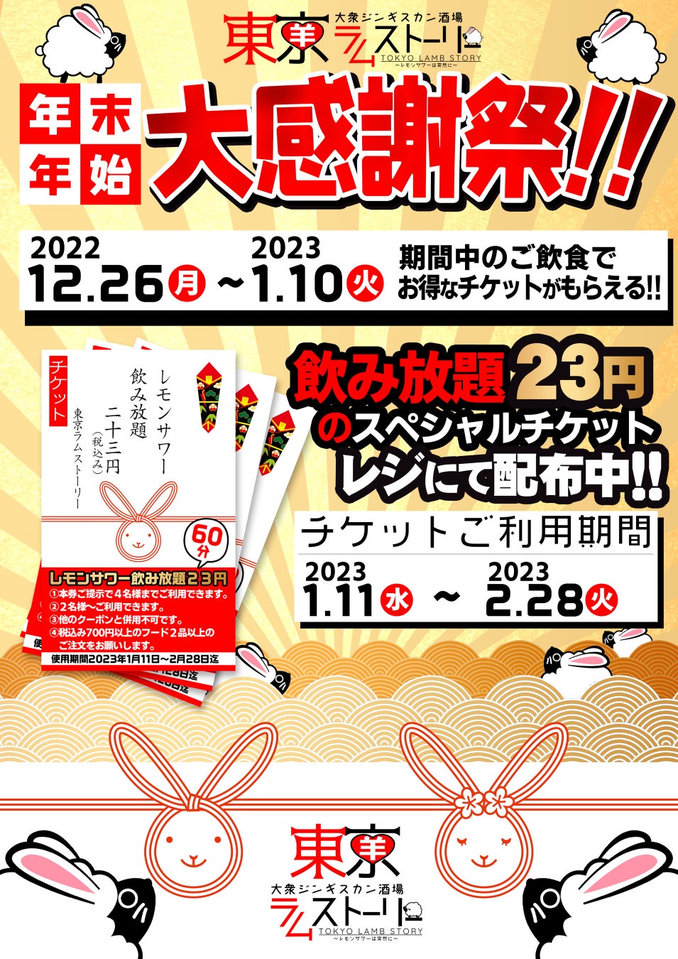 お年玉はレモンサワー飲み放題⁉ 大衆ジンギスカン酒場『東京ラムストーリー』年末年始 に感謝のお年玉チケット配布