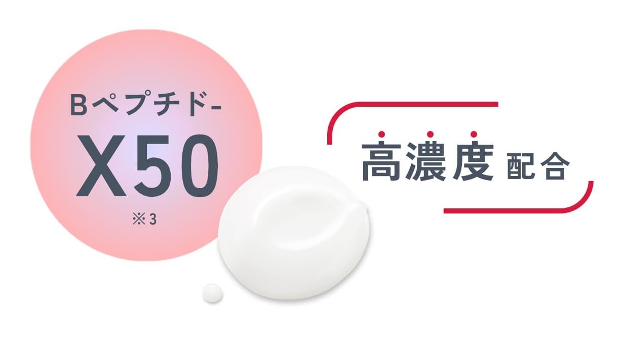 キー成分「Bペプチド-X50※3」を高濃度で配合。まるでドローンのように、肌の奥※2にあるゆるみ※1の根元※2を見つけて、直接アプローチ。美容液成分をすばやく届け※2、ゆるみ肌をシュッと引きしめます※4。