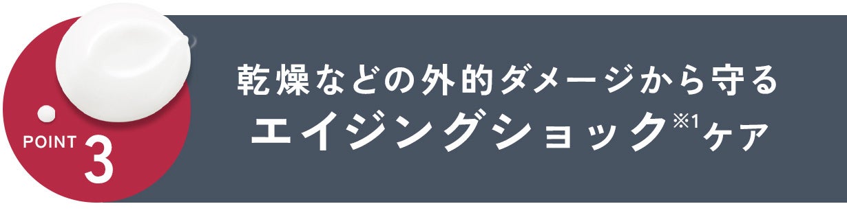 日常的に肌へダメージを与え、肌印象を変えてしまう環境ショック(エイジングショック)から守り、肌を健やかに保ちます。