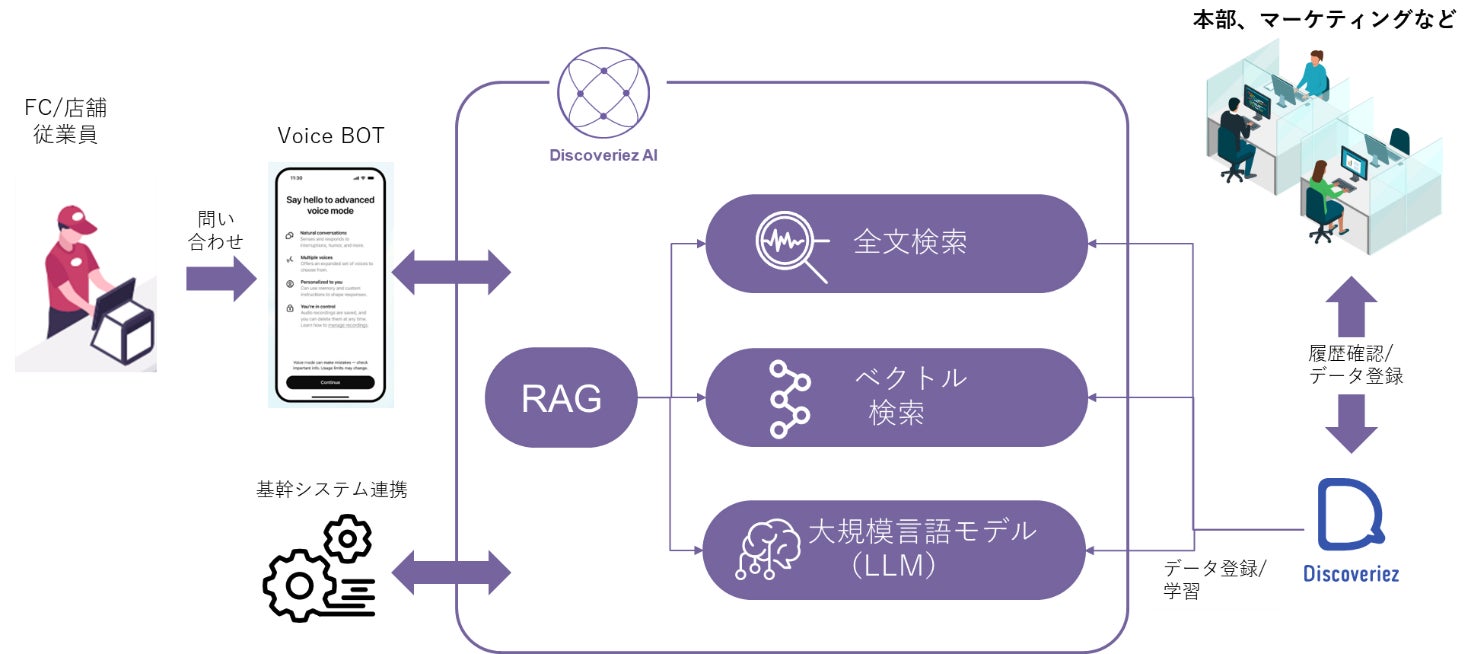 「Discoveriez AI」は、A.I.(Artificial Intelligence、人工知能)を通じて、人間が行う作業を円滑かつ正確にサポートすることにより、顧客対応業務の現場で生成AIによりDX化を推進し、顧客対応の時間短縮および顧客データの正確な管理を実現し、人材活用を最適化するサービスです。問い合わせ窓口の最適化、人的リソースの削減と最適化、顧客データの正確な管理・改善を実現します。