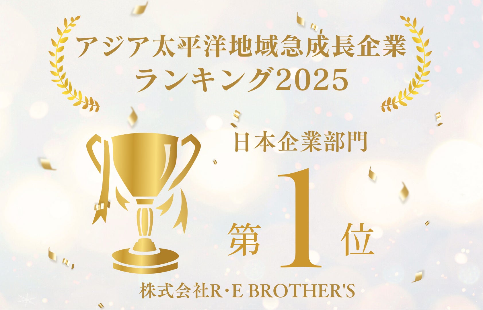 株式会社R・E BROTHER’Sがアジア太平洋急成長企業ランキングで24位にランクイン!国内ランキングでは1位!PINCH HITTER JAPANグループ2社ランクインの快挙達成!