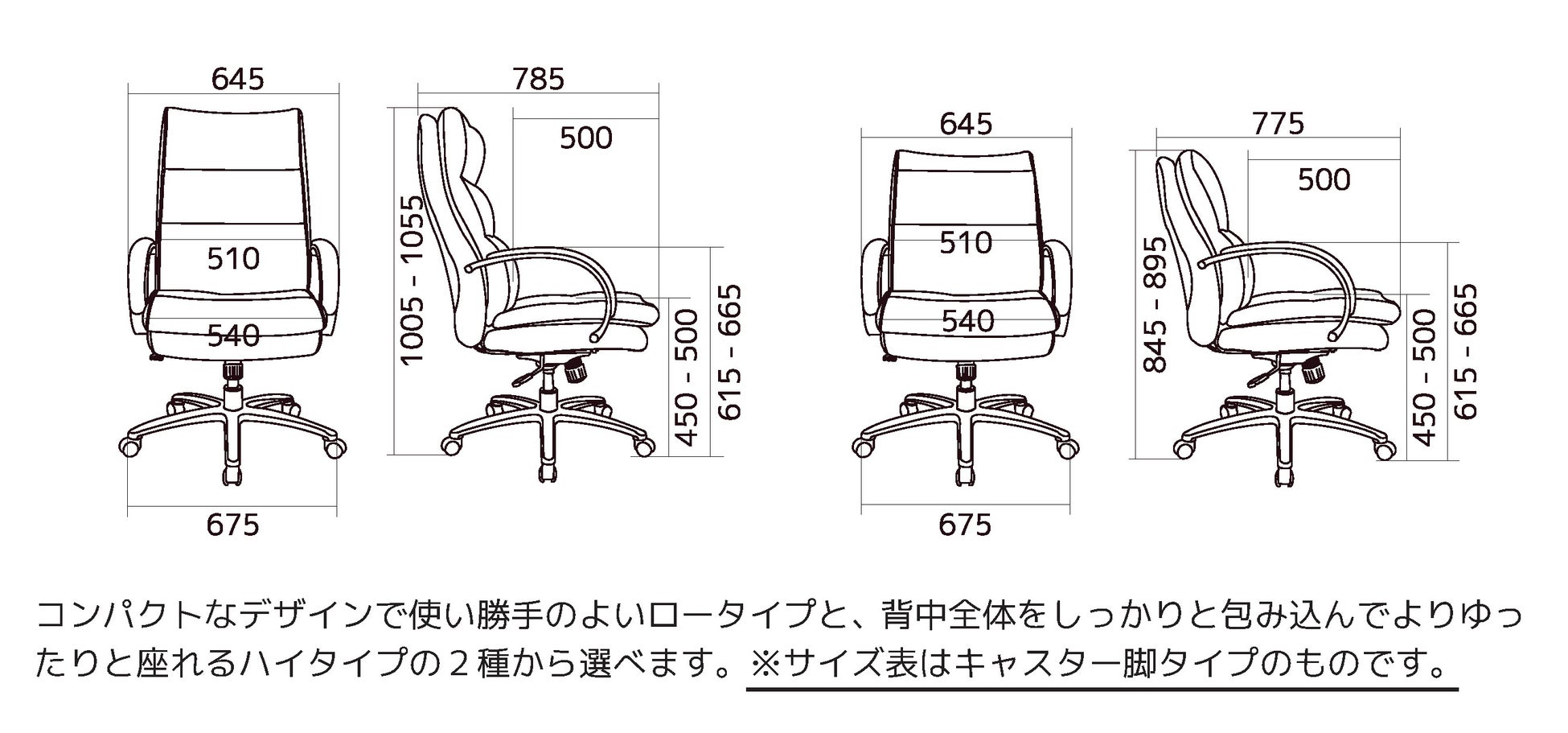 カラーは6色、ハイタイプとロータイプの2種、脚はキャスター脚と固定脚の全24タイプ。