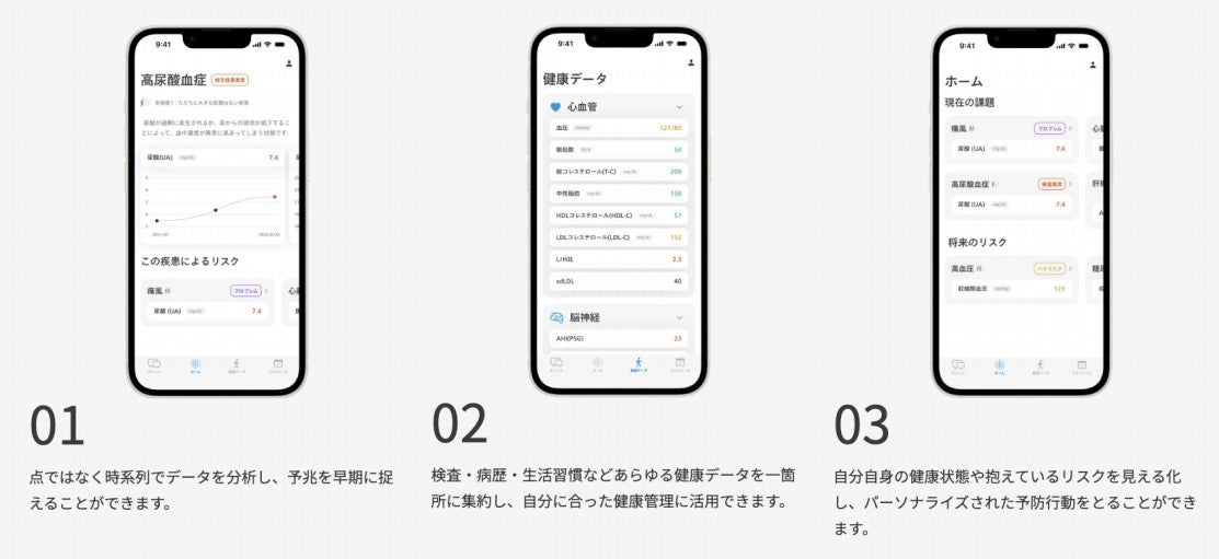など、お申し込みプランに応じたサービスをご提供します。個々の医療データをクラウドで管理し、病気の早期発見とそのリスクを最小化するという社会貢献性が評価され「ASPICクラウドアワード2024」において、社会業界特化系ASP・SaaS部門のDX貢献賞を受賞。「Wellness Membership」により病気の早期発見とそのリスクを最小化し、健康長寿延伸の実現を目指しませんか。
