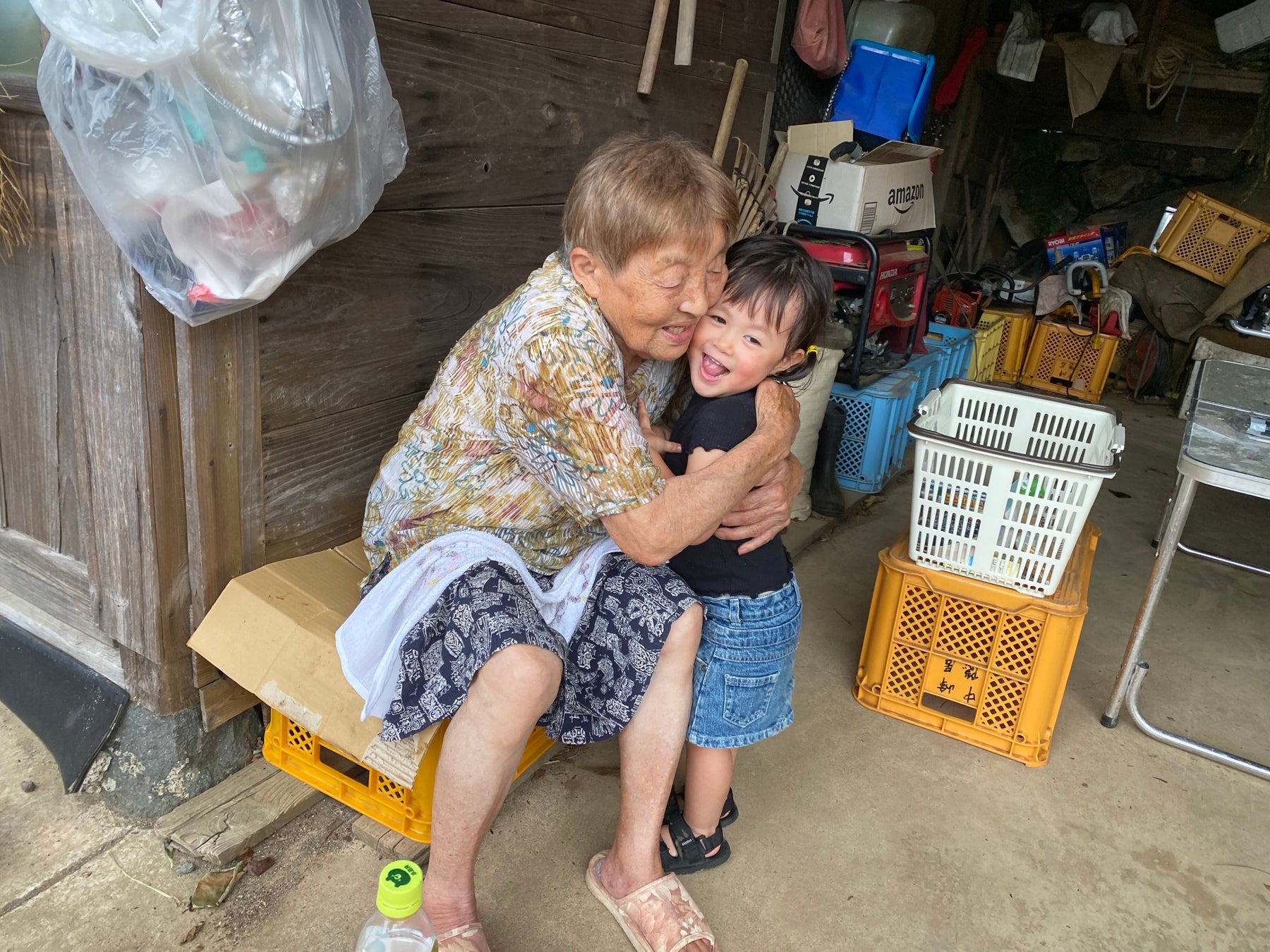 「私たち夫婦は医療職だからお盆休みなんてないんだけど義実家に帰るとお盆休みっていいな〜🥰と思ってしまう、貴重な1日休み🎌おばぁちゃんは93歳👀お嬢ちゃんとは91歳差ってことか👀」(一部抜粋)