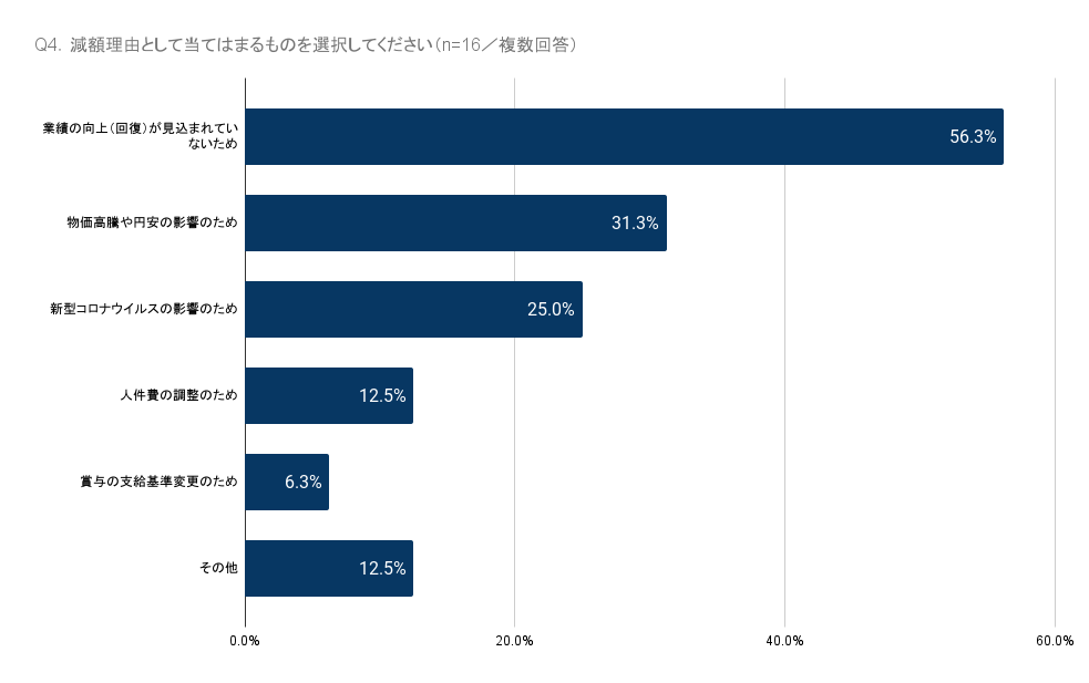 減額理由は、「業績の向上(回復)が見込まれていないため」が最多