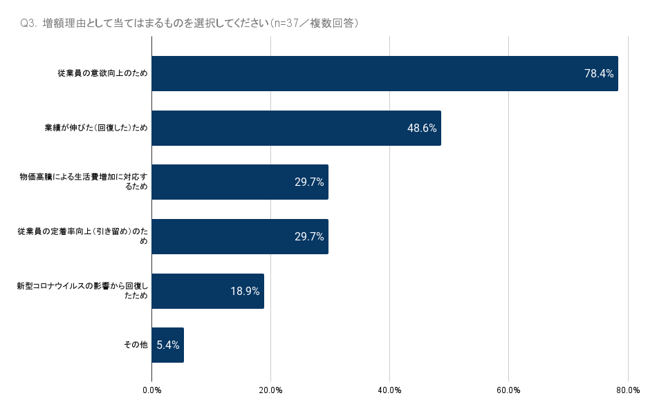 増額理由の1位は、「従業員の意欲向上のため」
