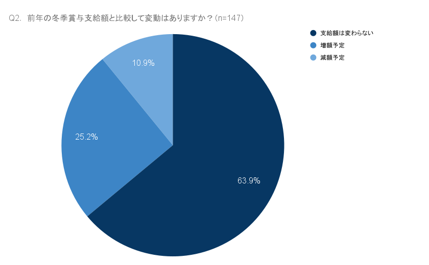 支給額は、前年冬季と比べて「変わらない」が63.9%