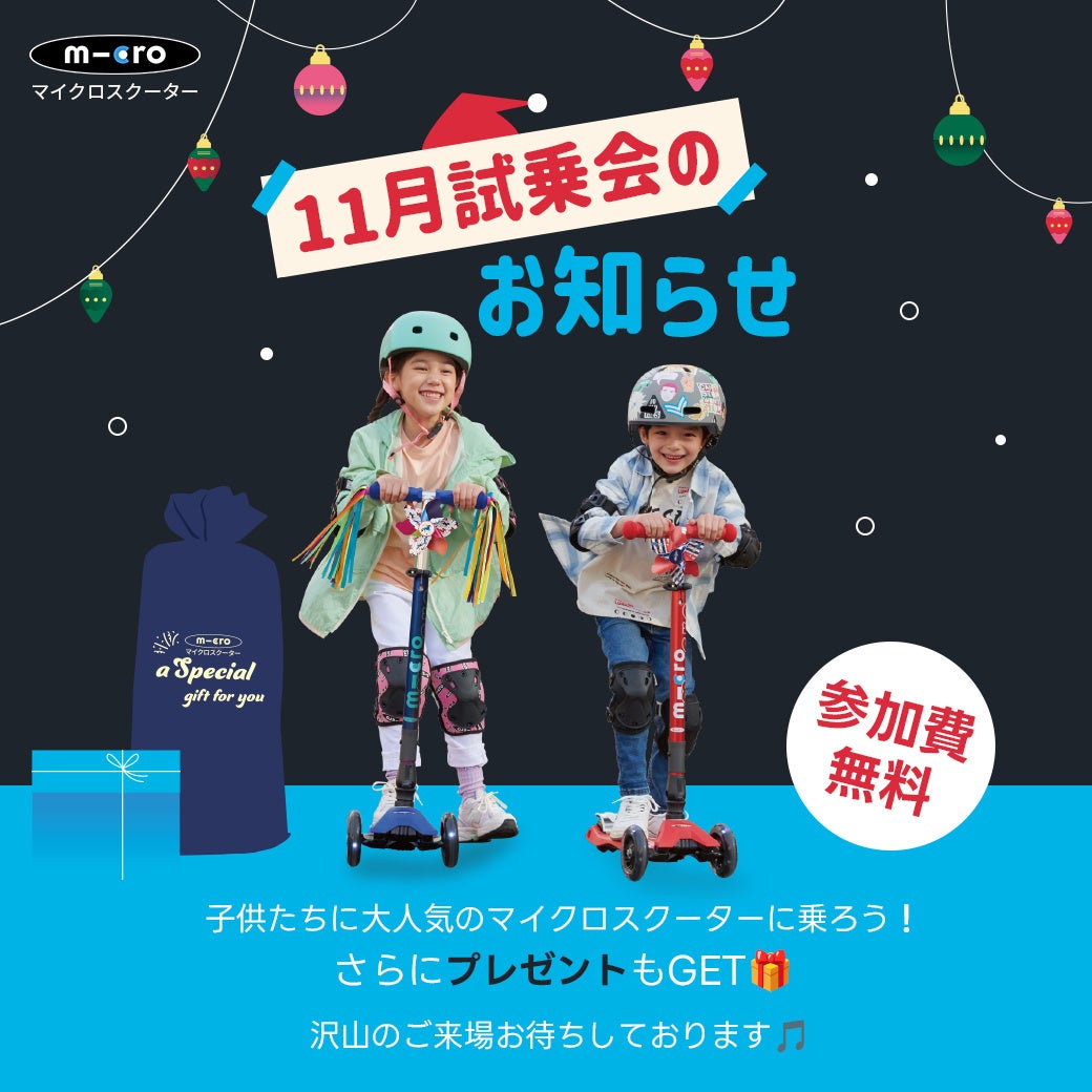 世界で子供たちに人気のキックボードブランドマイクロスクーターは、クリスマスシーズンを迎え、「マイクロ試乗会」を開催すると発表しました。