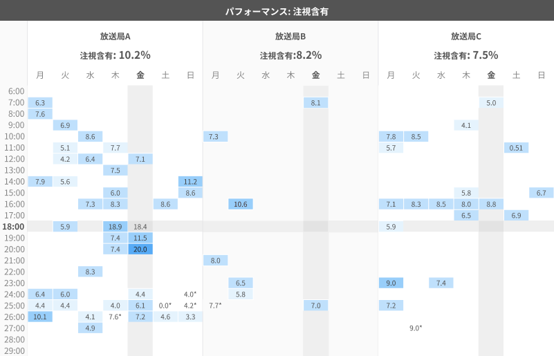 データにご興味いただくものの、データ費用を捻出するのは社内調整が困難で、データのみ購入する事にハードルの高さを感じていらっしゃいました。もとから予算をとっていたCM出稿の費用で、全国で最もコストが高く効率改善のインパクトが大きい関東エリアの注視データを手に入れていただくことがでる「データトレードプラン」を採用いただくことで、社内調整という問題をクリアし、データを利用することができました。