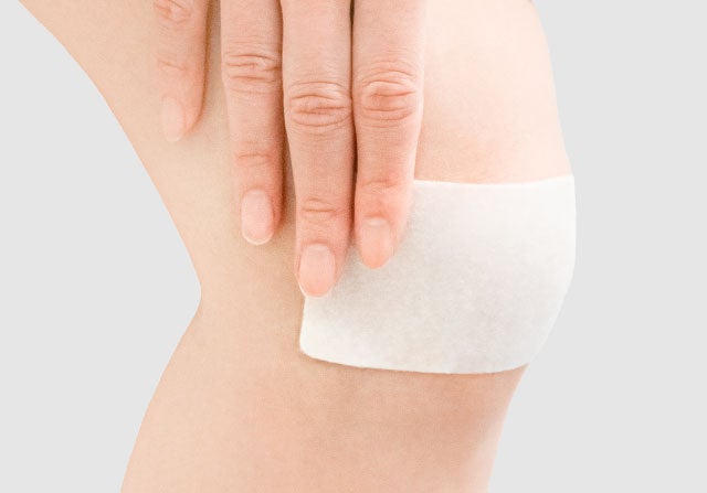 膝悩みへアプローチする成分で代表的なものにヒアルロン酸*¹があります。体内へ取り入れる方法としては、「飲む」「塗る」「注入する」などがありますが、『ヒアロエイド』はそれらとは全く異なり、膝へ直接「貼る」方法を採用しています。