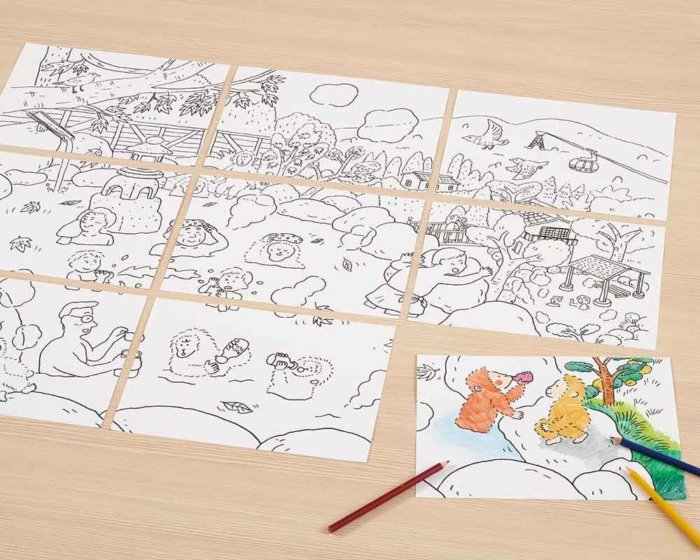 1枚の大きなイラストを分割し9つのピースにしたぬりえで、介護レクリエーション業務の負担軽減やコミュニケーション活性化を目的に開発された商品です。従来、介護レクリエーションは介護従事者のスキルや経験により盛り上がりが左右されますが、『ピースぬりえ』はこうした介護従事者の属人的な「レクリエーションを盛り上げる力」に左右されることなく、誰が実施しても、会話が生まれ盛り上がるレクリエーションができるよう商品設計されています。