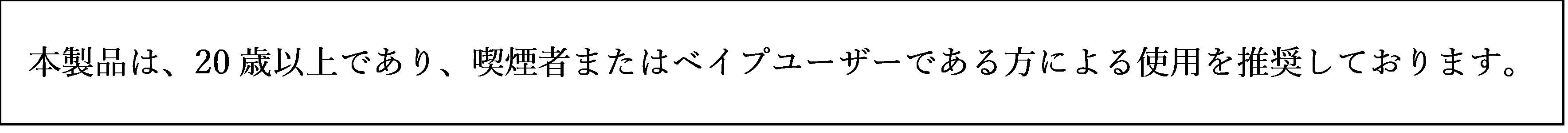 BATグループでは、たばこ製品のマーケティングを適切に実施するために国際的な自主規準を設定しています。そのためベイプ製品に関しても、弊社としては、責任あるマーケティング活動の精神に則り、本製品は20歳以上であり、喫煙者またはベイプユーザーである方による使用を推奨しております。記事掲載していただく際には、「注意文言」が表示されるようご配慮いただきたく存じます。 ご協力の程、何卒よろしくお願い申し上げます。