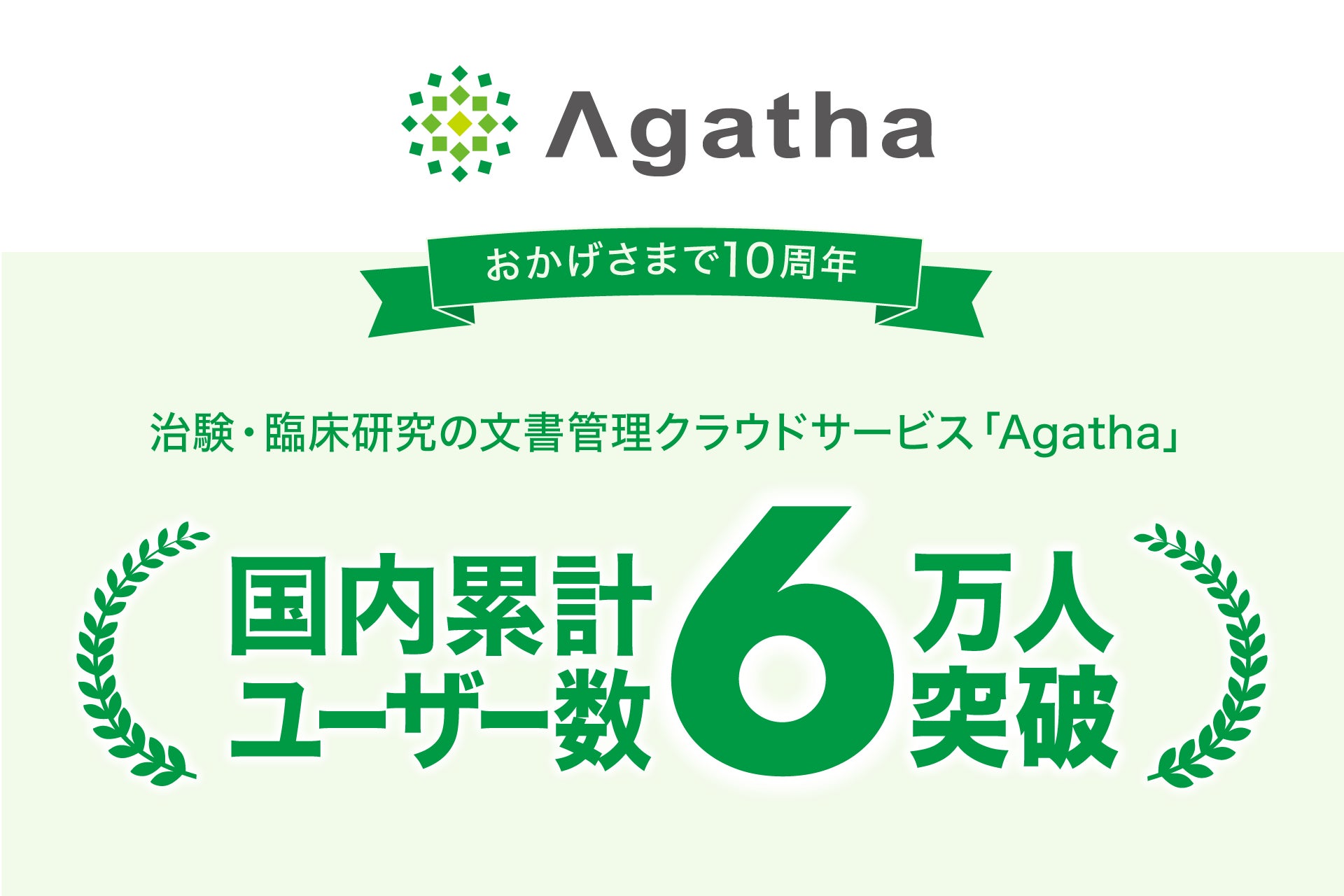 アガサ株式会社(本社:東京都中央区、代表取締役社長:鎌倉千恵美、以下「当社」)は、当社が提供する治験文書管理クラウドシステム「Agatha(アガサ)」において、2025年5月にユーザー数が6万人を突破したことをお知らせいたします。