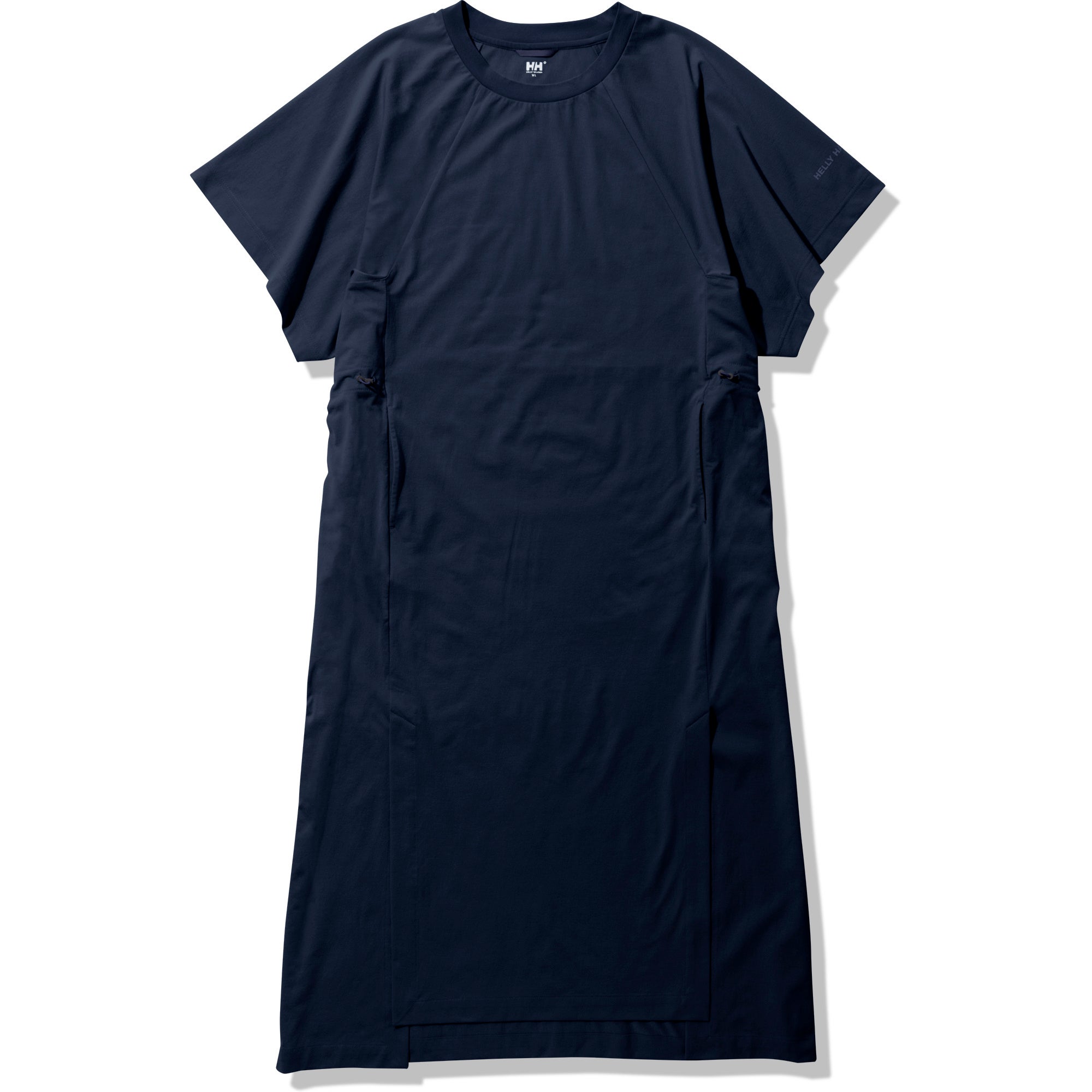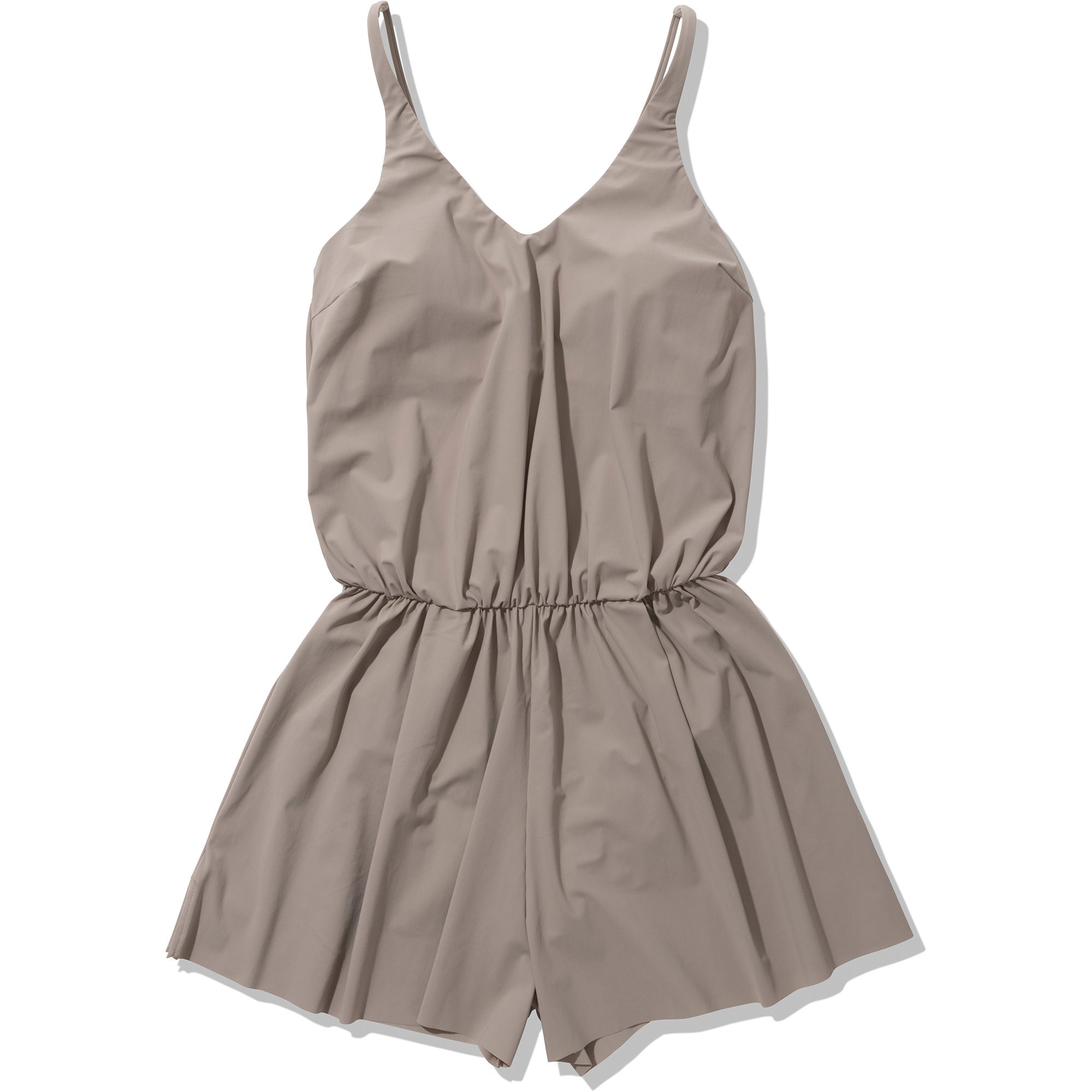 カジュアルなスタイルから水辺のアクティビティまで対応できる水陸両用ワンピース。水着の上から羽織れるゆったりとしたシルエットに加え、ウエストのドローコードでシルエットの変化を楽しめます。裾にはスリットを配し、動きやすくしました。