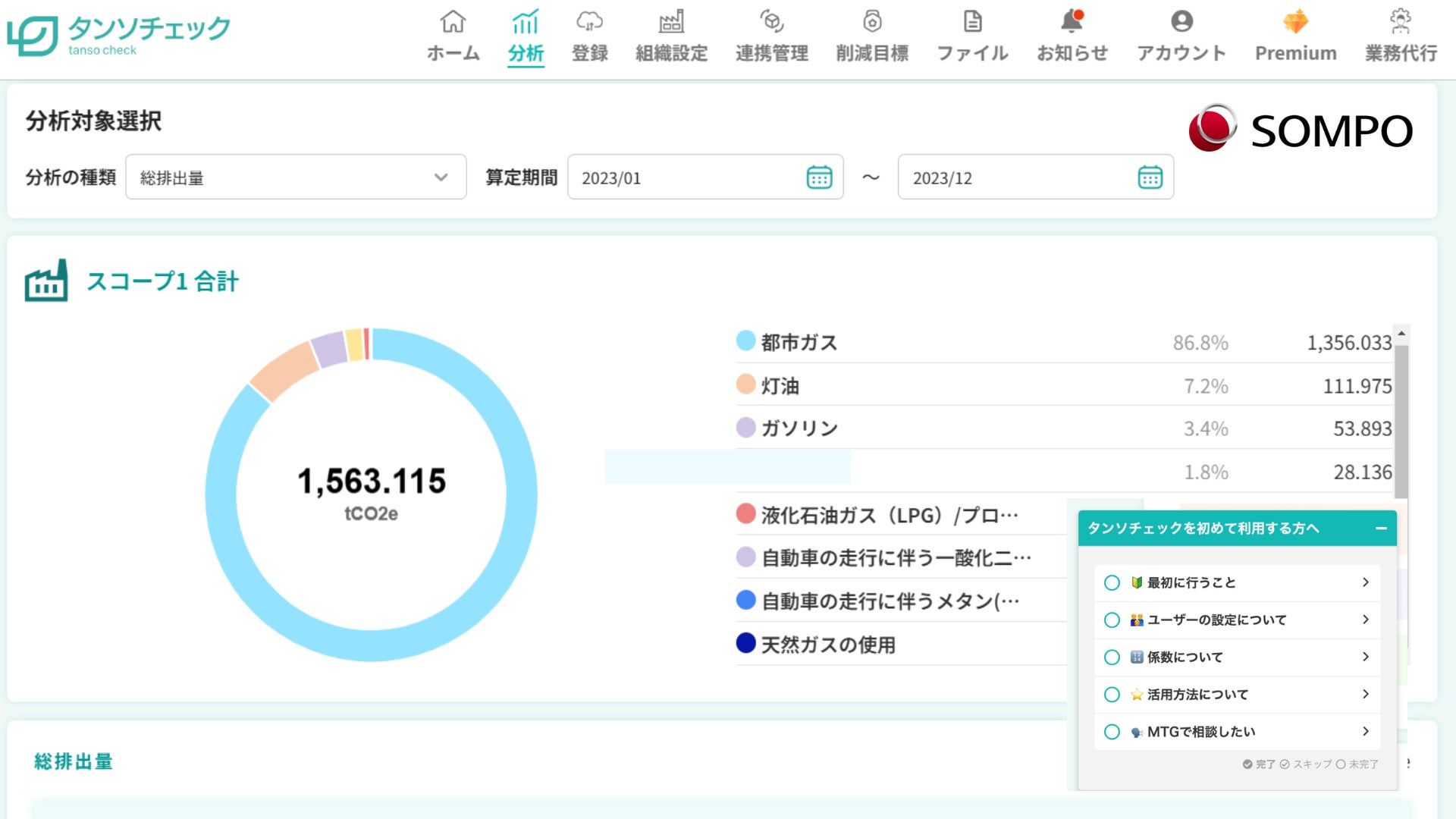 簡単な操作でScope1、2、3を含むCO2排出量を視覚化。取引先提出用のレポート作成もワンクリックで可能です。
