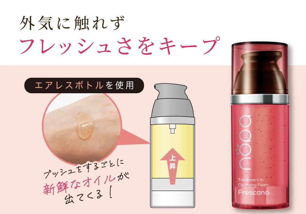 最後までクレンジング液が空気に触れず使い切ることができるエアレスボトルを採用。