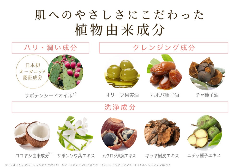 肌へのやさしさにこだわって、クレンジング成分は植物由来!