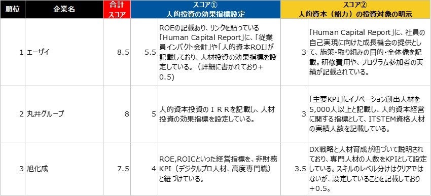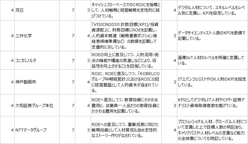 3点 | 投下資本の効果を測る財務指標と人材戦略が定性的に結びついている |