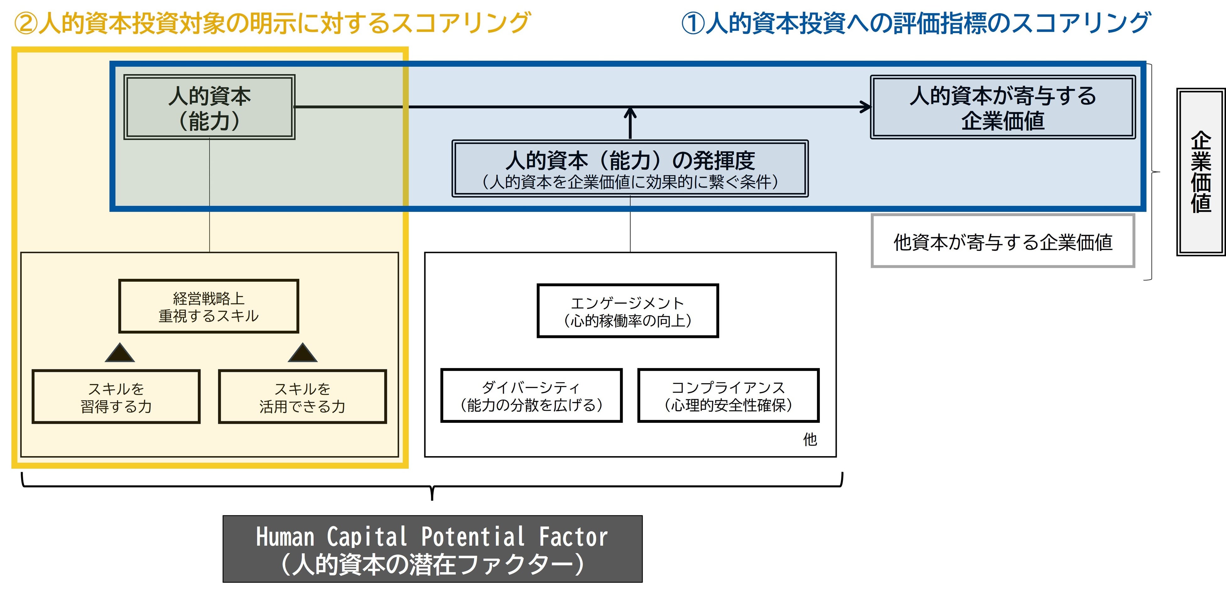 したがって、持続的な企業価値向上のためには、人的資本そのものと、人的資本の発揮度を含めた「Human Capital Potential Factor(人的資本の潜在ファクター)」を定量化し、企業価値にどのように寄与しているのかについての投資対効果(ROI)を検証していくことが重要であると考えております。