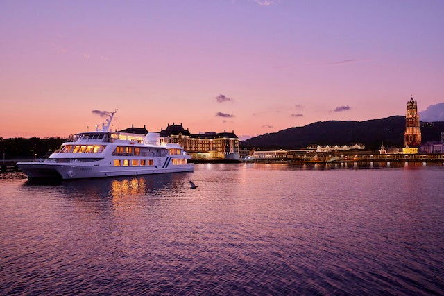 ハウステンボスに2021年7月に就航したクルージング船。披露宴やディナークルーズなど、お食事とともに穏やかな大村湾をゆったりとクルーズ。花火開催時には限定クルーズも登場し、特別な時間をお過ごしいただけます。