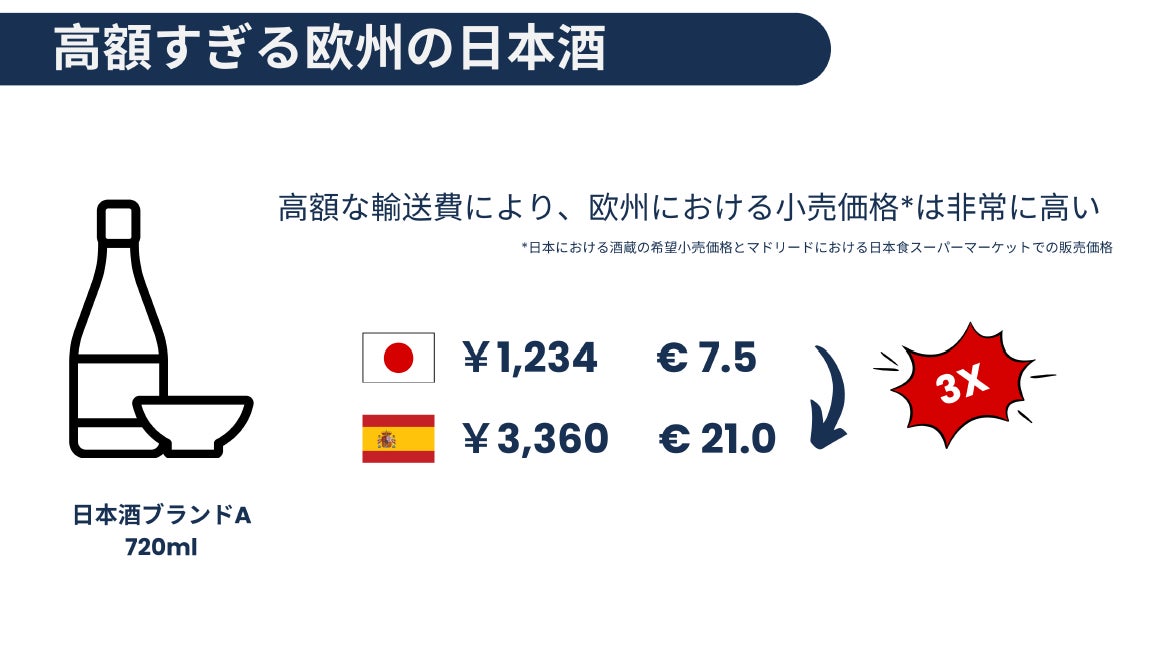近年、日本酒市場は国際的に拡大しているものの、海外輸送に伴う関税、物流コスト、保管環境の問題により、日本国内と比較して販売価格が高騰し、消費者へのアクセスが制限されています。本事業は、これらの課題を解決し、より多くの消費者に適正価格で高品質な日本酒を提供することを目的としています。
