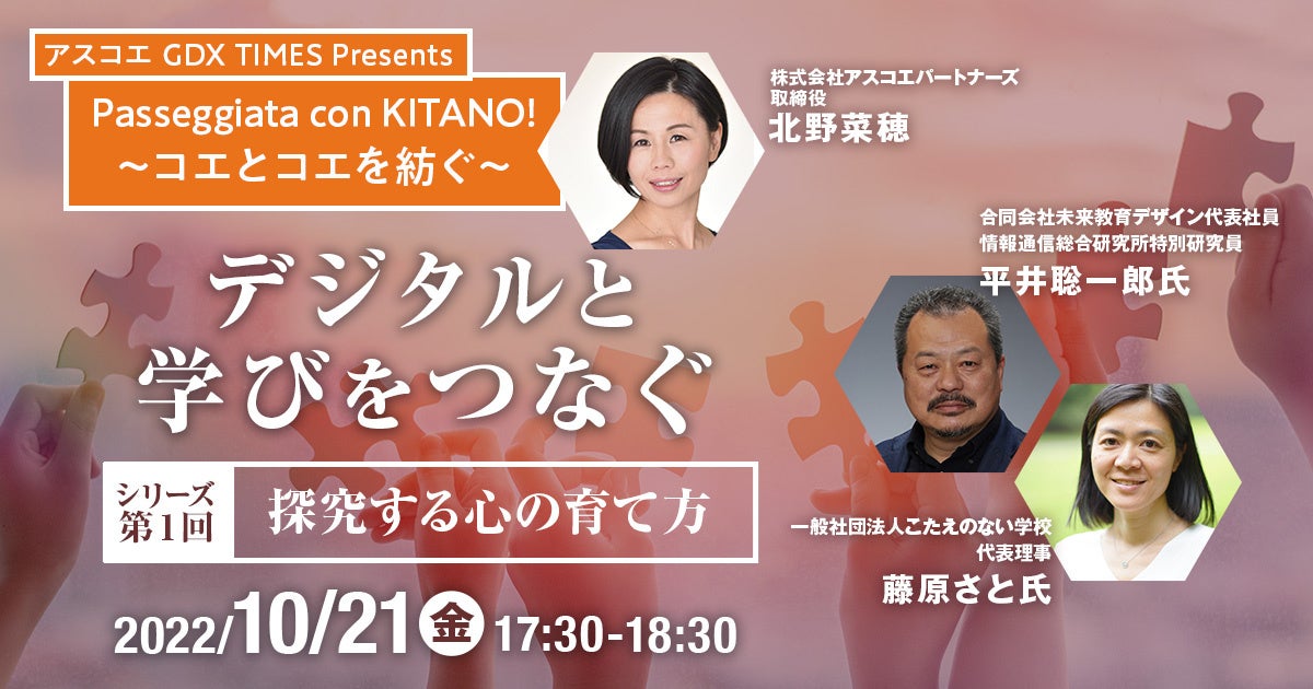 アスコエGDX Times Presents「デジタルと学びをつなぐ シリーズ第1回 探究する心の育て方」平井 聡一郎氏 ×藤原さと氏×北野菜穂 特別対談