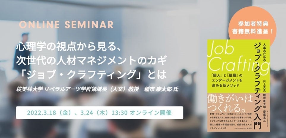 参加特典:昨秋より好評発売中『人事のためのジョブ・クラフティング入門(弘文堂)』を進呈いたします