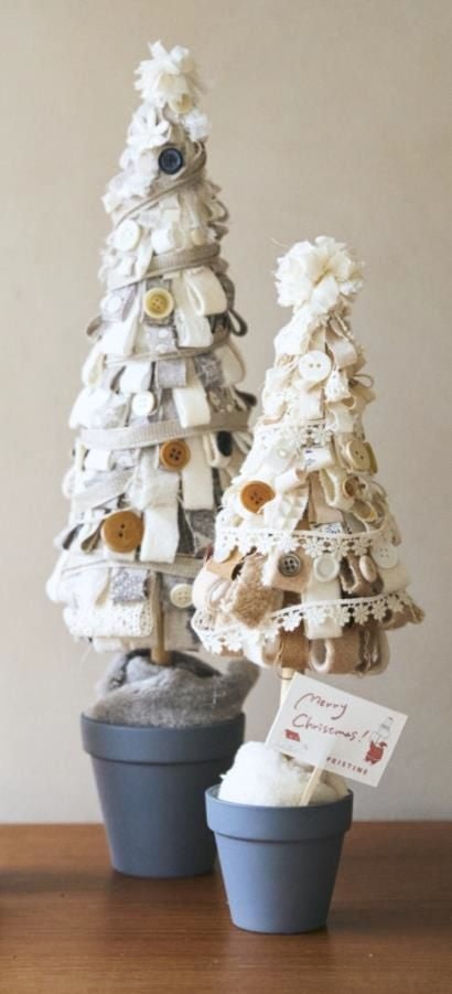 オーガニックコットンの残布やボタンやレースといった装飾パーツもあしらった2022年のクリスマスツリー。障害のある方々が作業する福祉事業所「地域作業所hana」でのものづくりです。