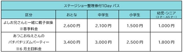 「よしお兄さんと一緒に親子体操」ステージショー整理券付1Dayパス ※数量限定