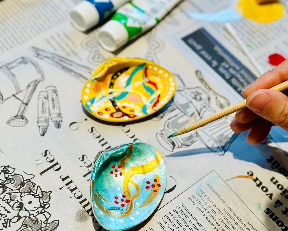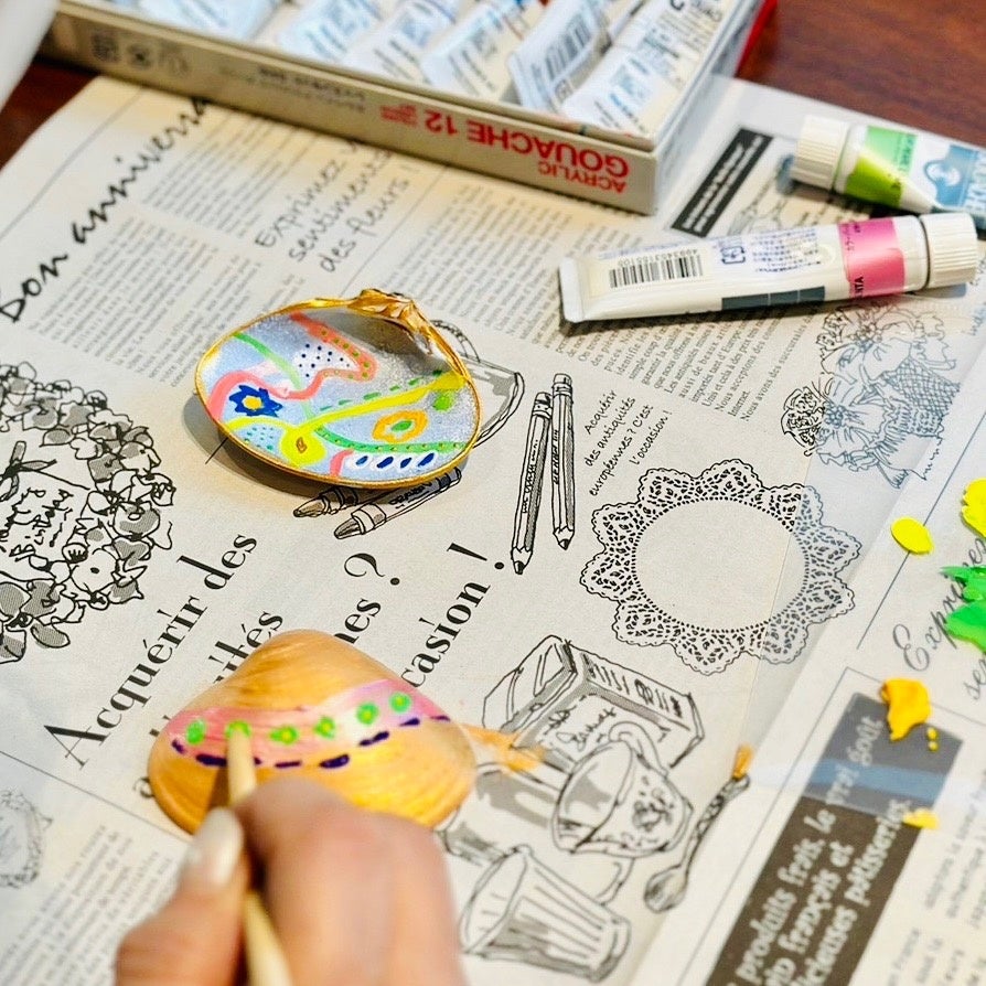 ヨックモックミュージアム、桃の節句に向けて YMアートセッション「貝に描く春祭り」を2023年2月に開催