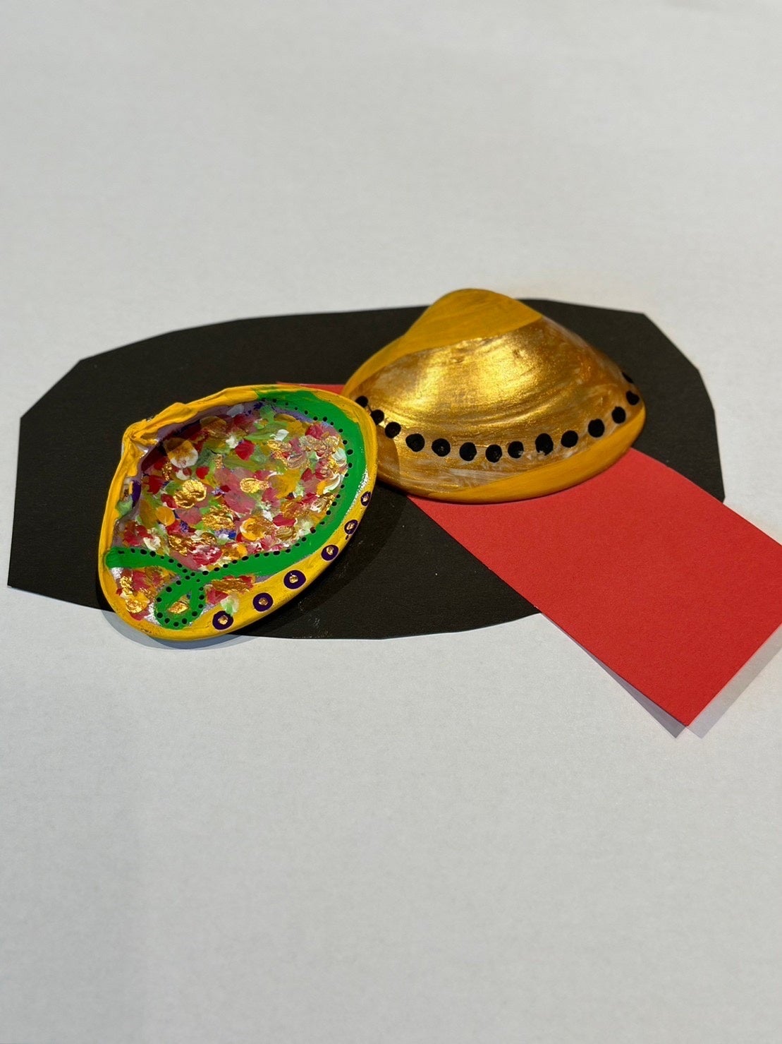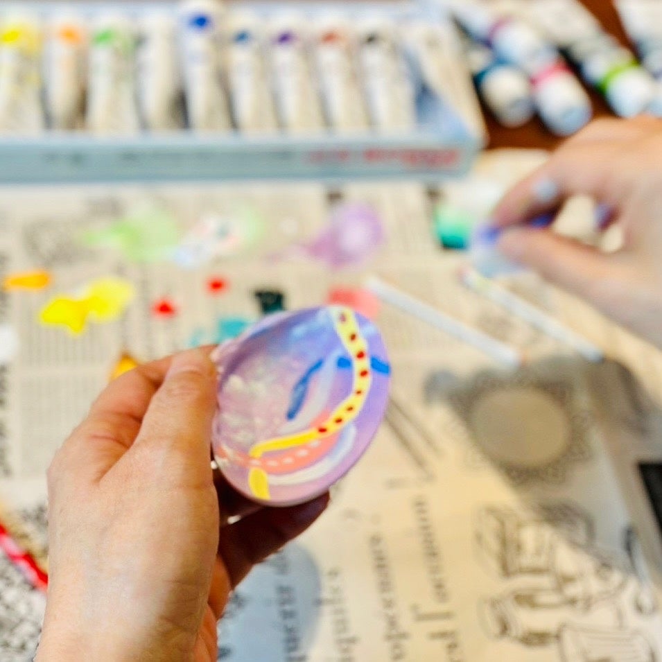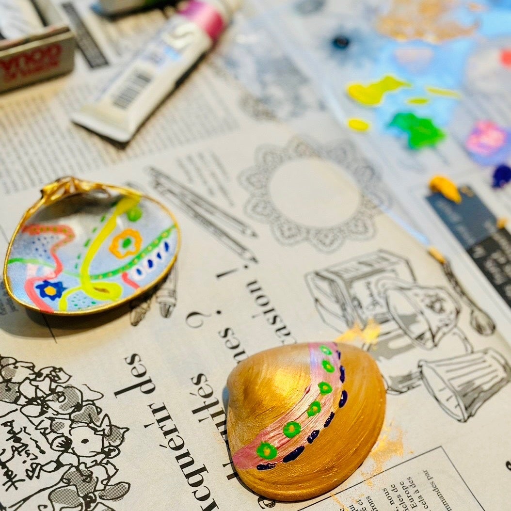 2023年の2月のYMアートセッションは、「貝に描く春祭り」と題して、寒い中にも感じる春へのあこがれや気配を、桃の節句に付きものハマグリに表現することを楽しみます。