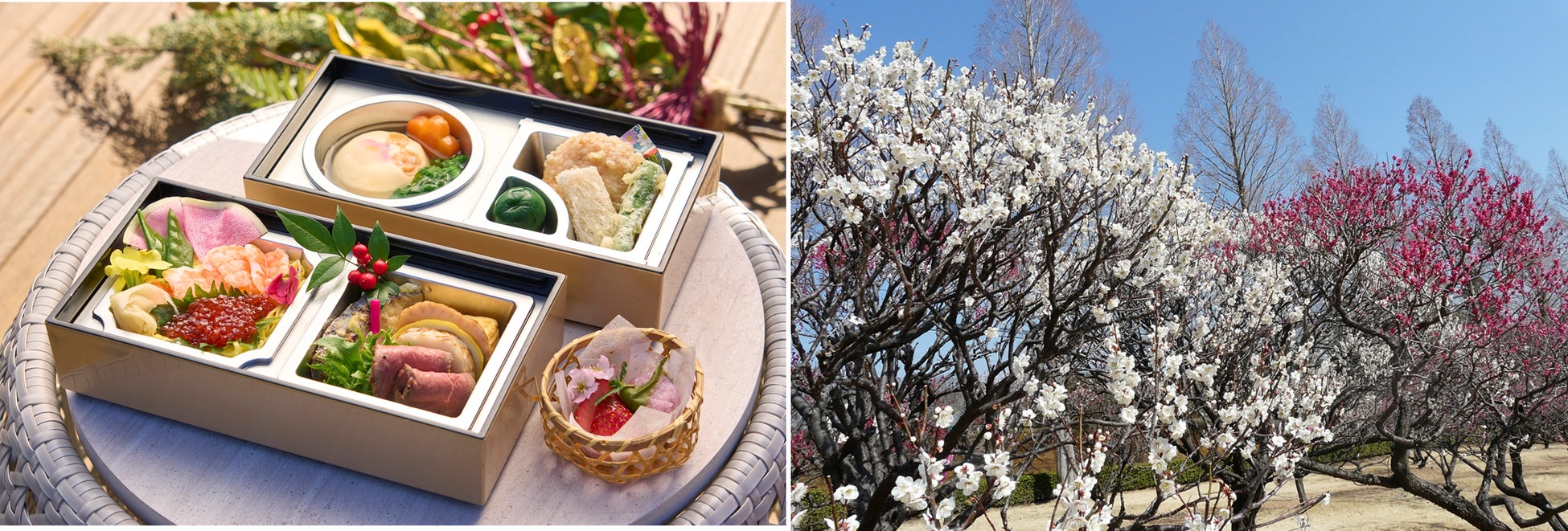 体験型リゾート施設『Sport & Do Resort リソルの森』(所在地:千葉県長柄町、代表取締役社長:曽谷友紀)では、約450本の梅の花がまもなく見ごろを迎える約7,000坪の梅園にて気軽にお花見ピクニックを楽しんでいただくために「和食処 翠州亭(すいすてい)」が昨年販売を開始した、春の食材をふんだんに使用した豪華梅見弁当「梅のピクニックBOX」について、好評につき今年も1日15食限定で、2023年2月4日(土)から3月12日(日)まで販売します。