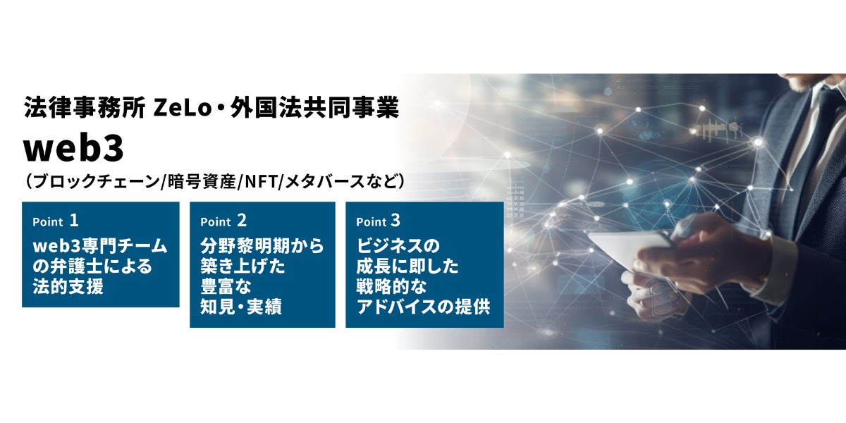 ※当事務所のWeb3領域に関する実績・サービスの詳細などはこちら(https://zelojapan.com/practice/blockchain)をご覧ください。