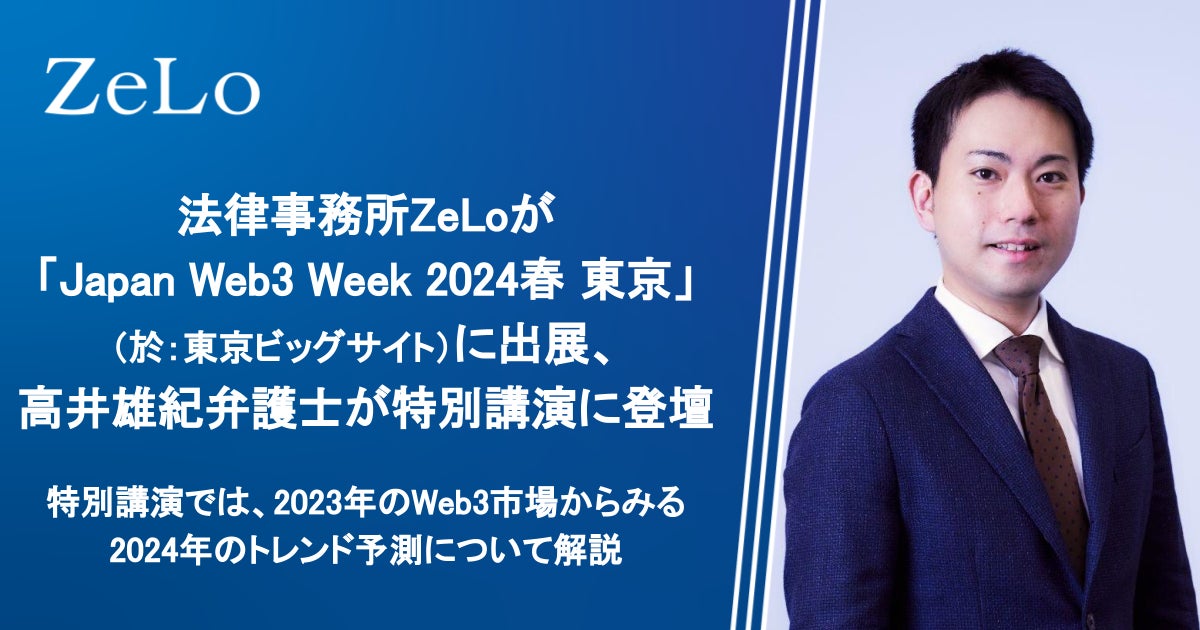 法律事務所ZeLoは、2024年2月20日~22日に東京ビッグサイトにて開催される「Japan Web3 Week 2024春 東京」に出展いたします。また、同イベントの特別講演に、当事務所の高井雄紀弁護士が登壇いたします。なお、本イベントは、日本最大級のDX総合展「DX 総合EXPO 2024 春 東京」の同時開催展として開催されます。