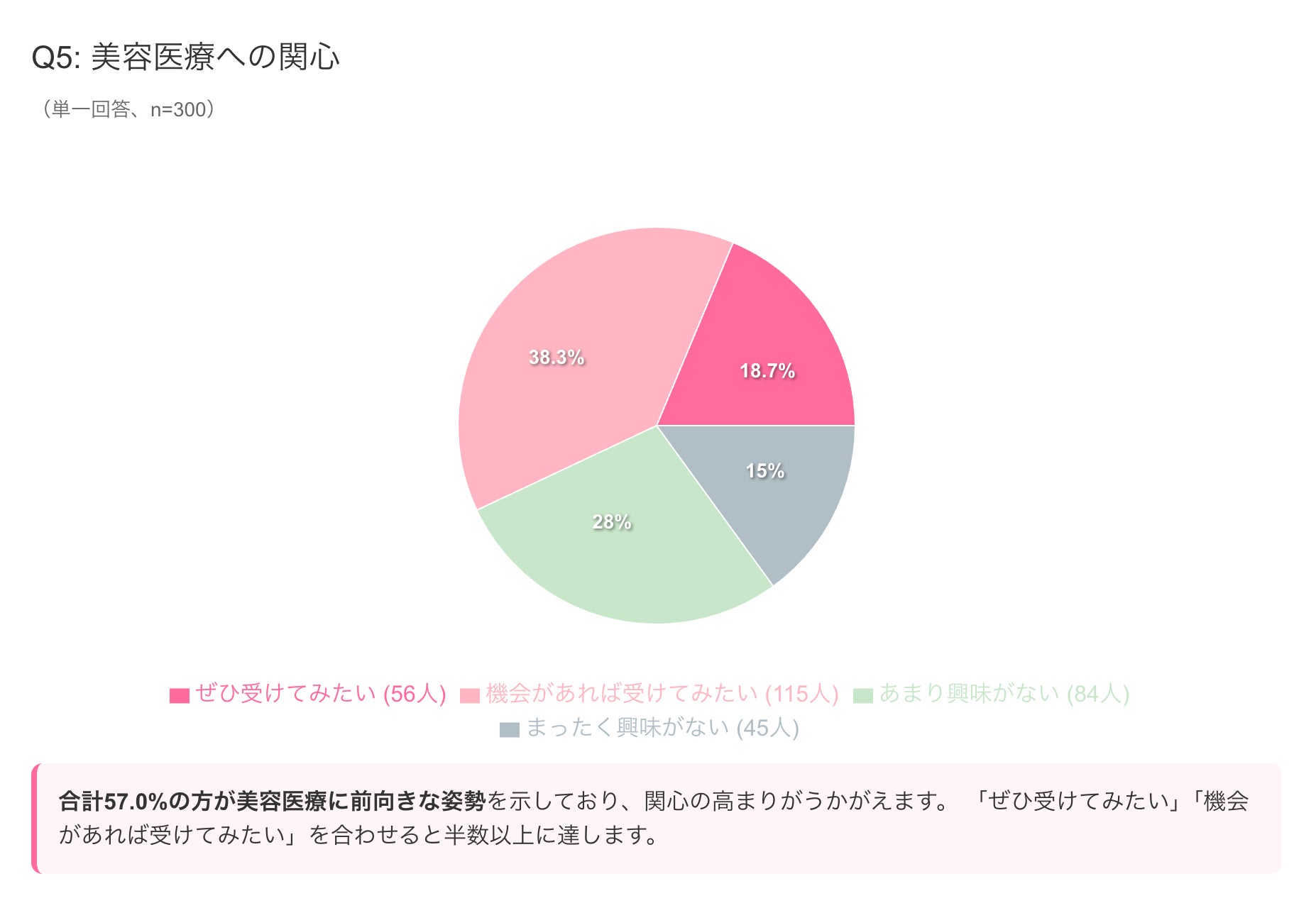 合計57.0%の方が美容医療に前向きな姿勢を示しており、関心の高まりがうかがえます。