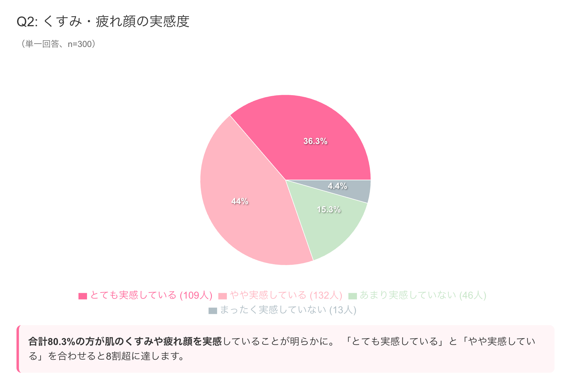 合計80.3%の方が肌のくすみや疲れ顔を実感していることが明らかになりました。