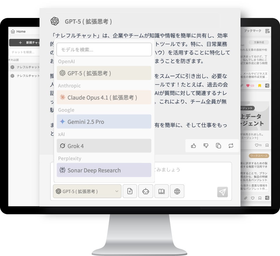 マルチAIモデル対応:ChatGPT・Gemini・Grok・Claude・Perplexityなどの最新生成AIモデルに対応。各モデルの特性を活かした最適な活用をAIが自動サポート