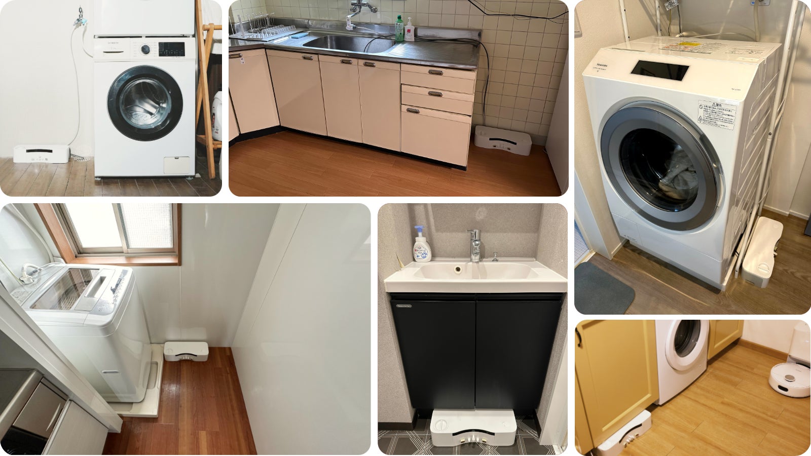 水交換ステーションは「幅40㎝×高さ10㎝」と非常にコンパクトで、洗濯機のそばやキッチン、洗面所、トイレなど、水道さえあればどこでもお好きな場所へ設置いただけます。また、洗濯機や食洗器のあるご家庭では付属品の「3Wayジョイント」を使用して、洗濯機や食洗器の水道を共有可能。ご自宅に洗濯機や食洗器がない場合でも、給水・排水チューブを直接配管に取り付けることで、水交換ステーションを設置いただけます。