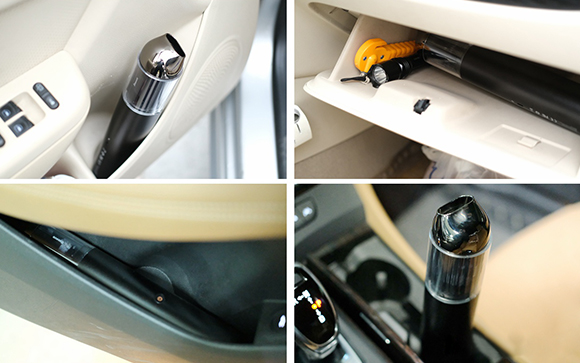 車内の暗い隅や隙間をはっきりと照らし出し、徹底的に掃除することができます。
