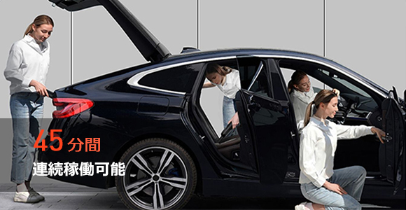「A3」は8000mAhのバッテリーを内蔵しており、1回のフル充電で45分間連続稼働できます。掃除中に充電が切れることはもうありません!余裕を持って車の隅々までキレイに。