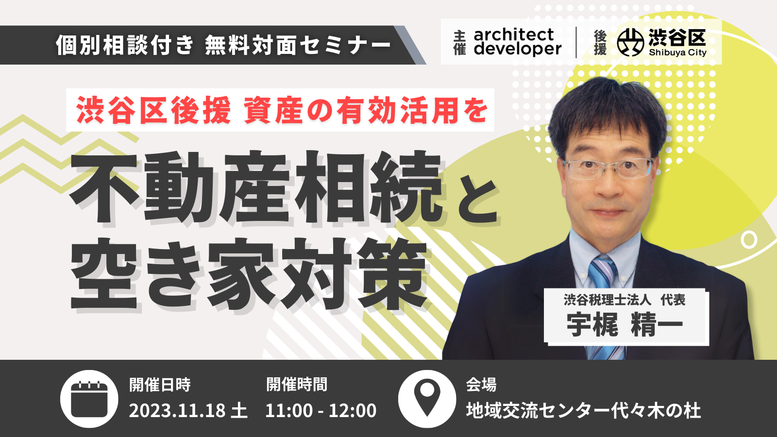 【無料セミナー】11月18日開催 渋谷区後援 相続と空き家対策セミナー!資産を空き家にしないために家族で考える