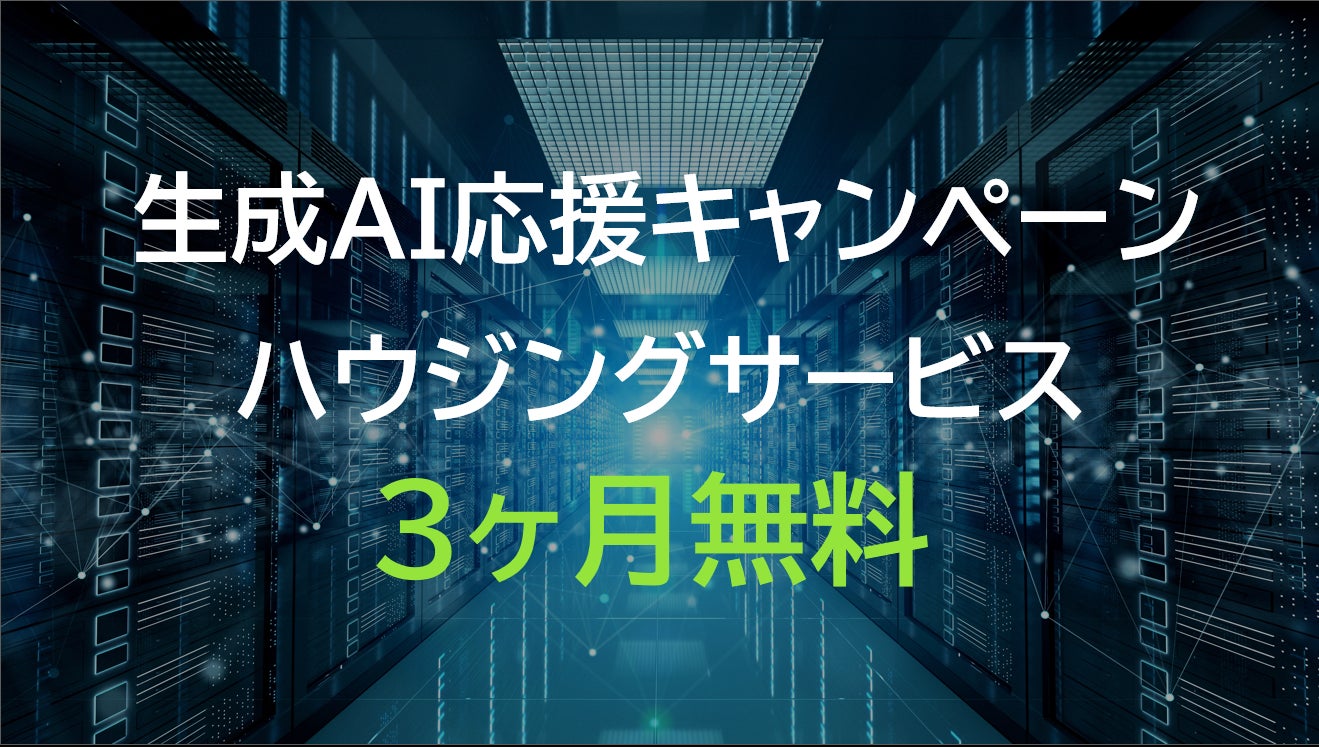 画像生成や言語生成などの生成AIの用途において、GPUサーバーのハウジングを利用される方を対象に高電力ハウジングサービスを3ヶ月無料で提供いたします。