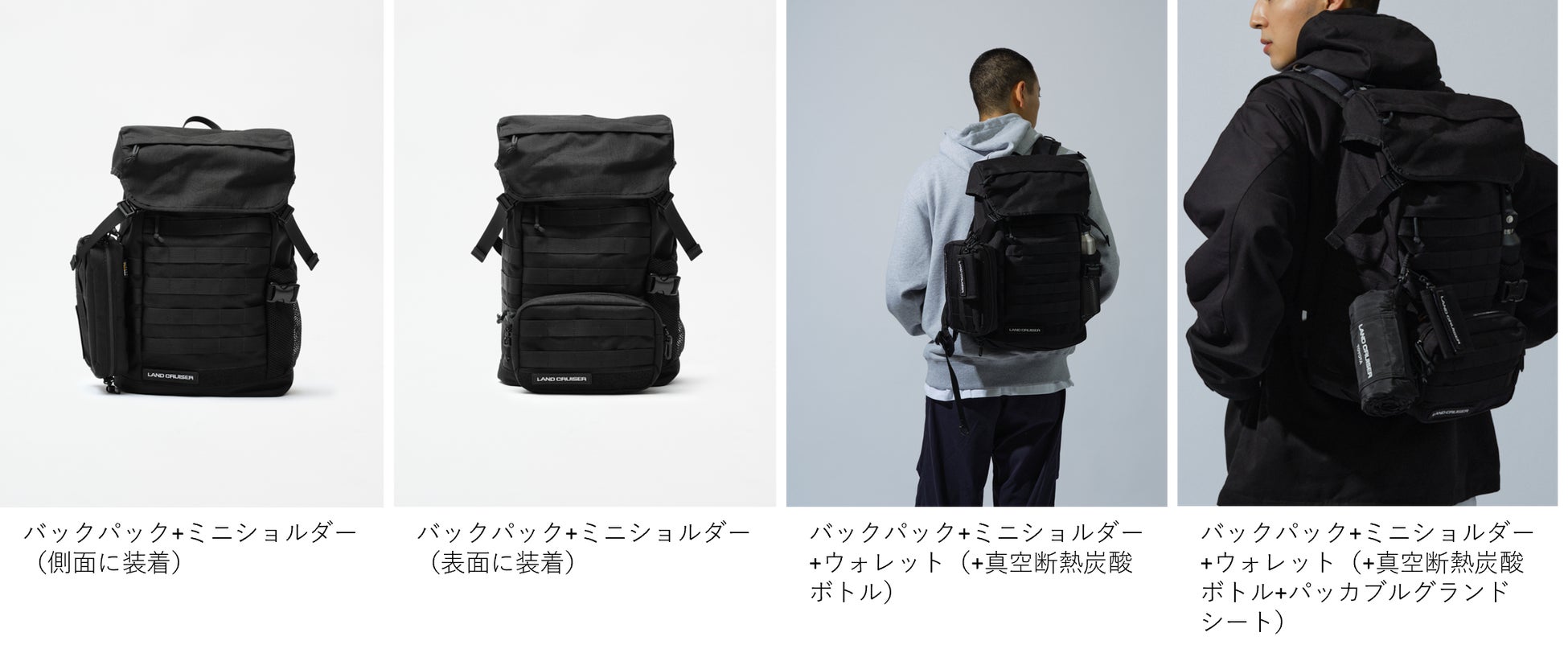 <ランドクルーザーの車両デザインチームと共に考案された、他アイテムと組合わせられる拡張性をもったバックパック>