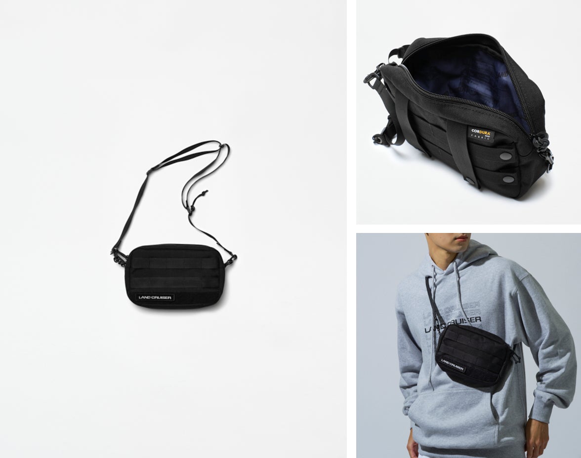 <ランドクルーザーの車両デザインチームと共に考案された、他アイテムと組合わせられる拡張性をもったミニショルダー>