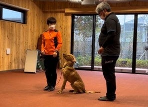 犬トレーニングの様子(ホームページより) フロア壁面(左)と犬トイレ部(右)に設置