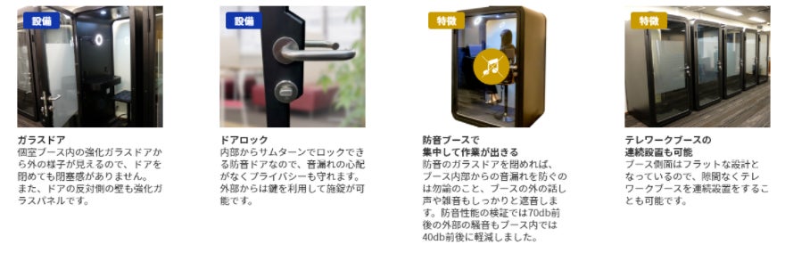 固定のオフィスを持たないワーカーが、普段のWeb会議で利用するだけではなく、急な会議が入った時にも近くにテレワークブースが設置されている施設があれば重宝されること間違いなしです。